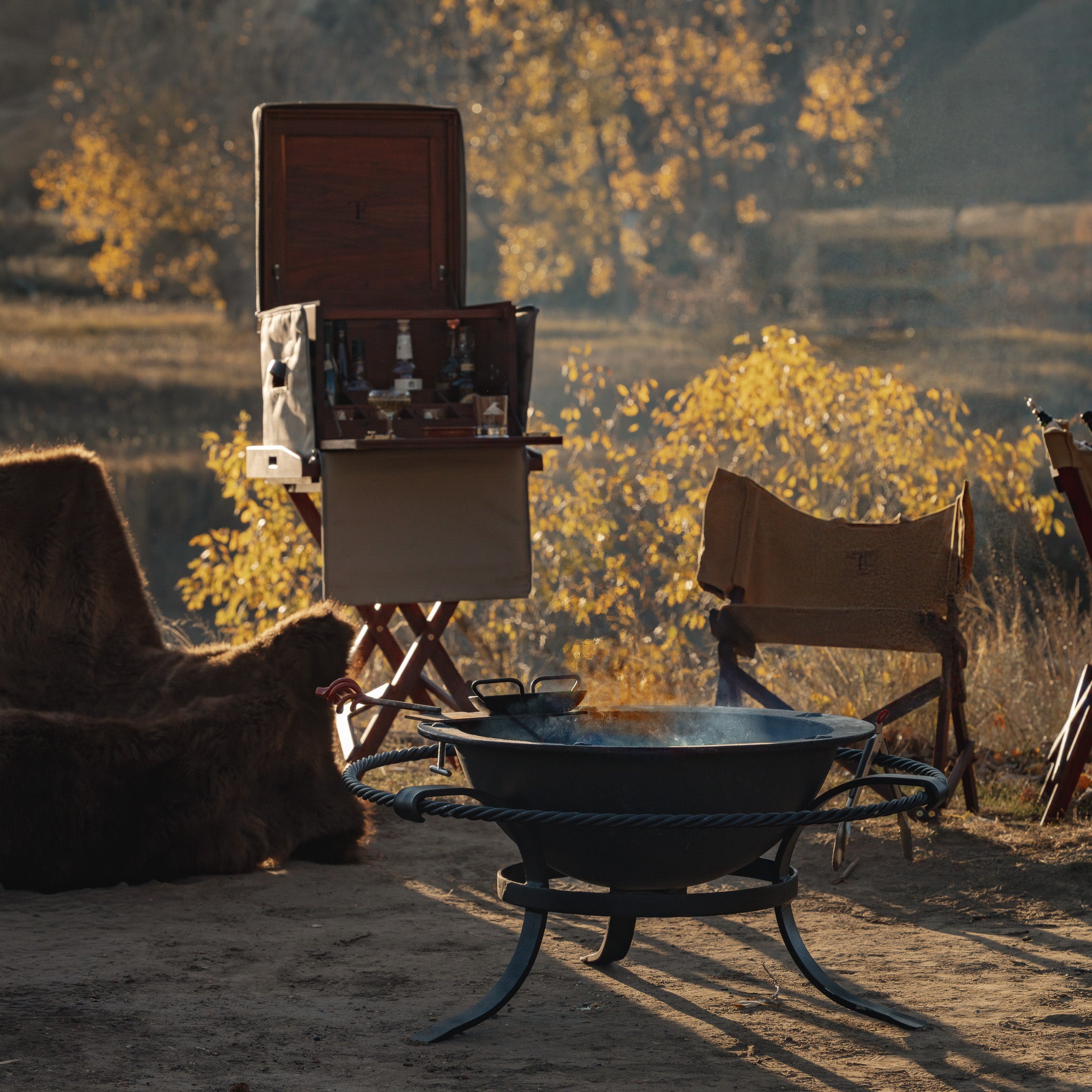 Handcrafted Teak Safari Field Bar with Leather Handles