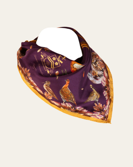Grouse Misconduct Aubergine & Gold Medium Square Silk Scarf