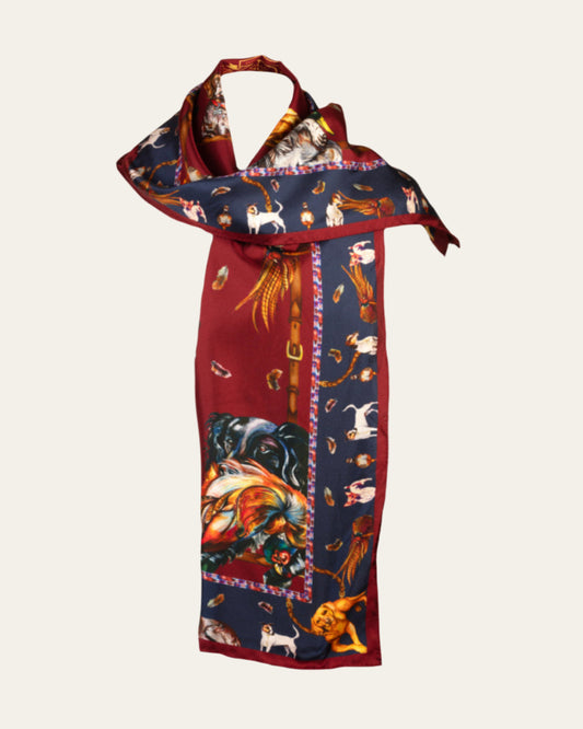 It's a Dogs Life Claret & Navy Large Silk Scarf