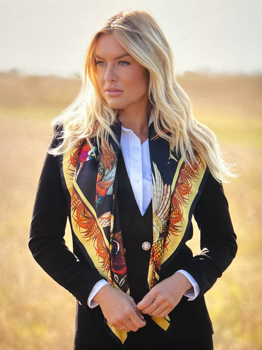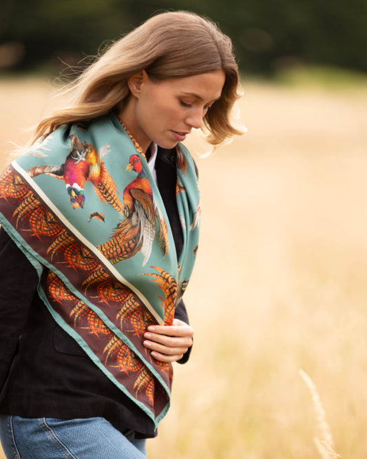 Luxury Grouse Misconduct Teal & Aubergine Silk Scarf by Clare Haggas - Medium Square
