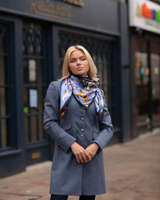 It's a Dog's Life Navy and Cobalt Large Square Silk Scarf