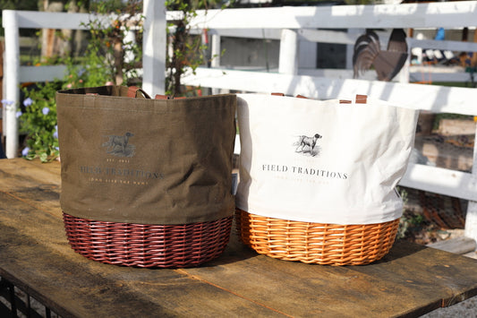 Field Traditions Canvas and Willow Basket Tote - Beige