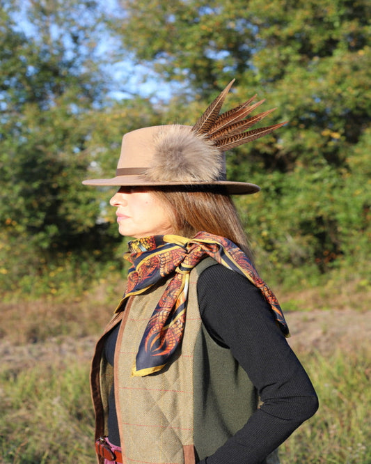 Rust Orange Fedora Hat with Pheasant Wrap