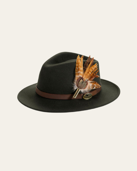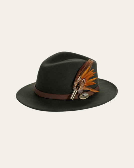 Hunter Green Felt Fedora with Tan Leather Band
