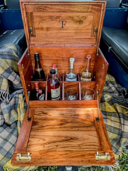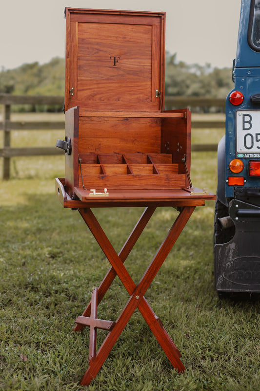 Handcrafted Campaign Field Bar in African Hardwood