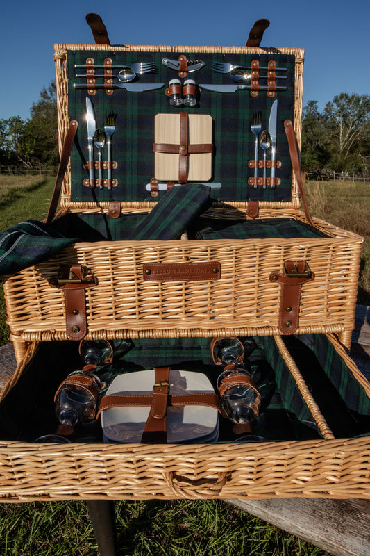 Field Traditions 4 Person Black Watch Tartan Picnic Basket