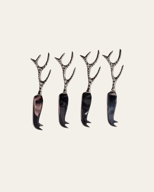 Set of 4 Stainless Steel Mini Cheese Knives with Antler Handles