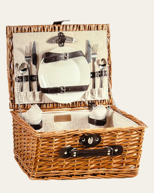 Handcrafted 2-Person Classic Beige Canvas Picnic Hamper
