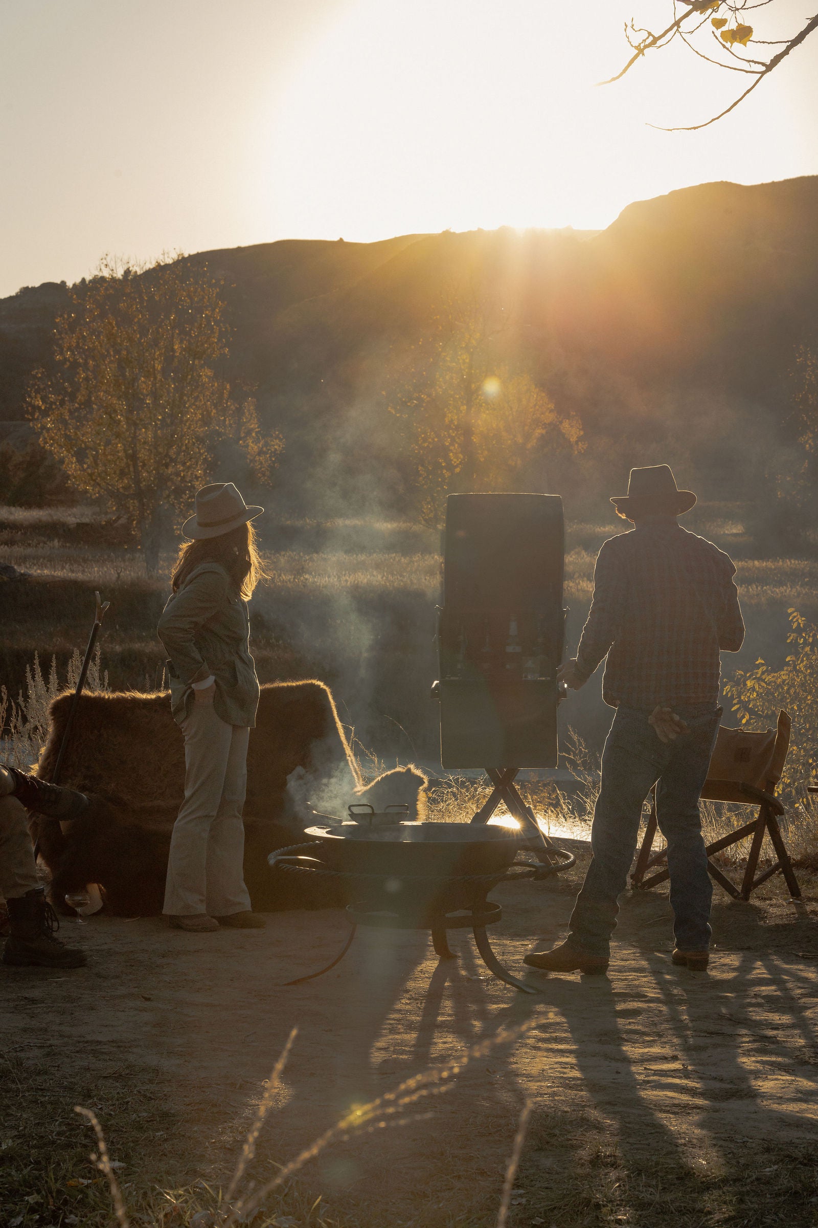Cooking, eating and gathering outdoors, from open fires to fireside tables.