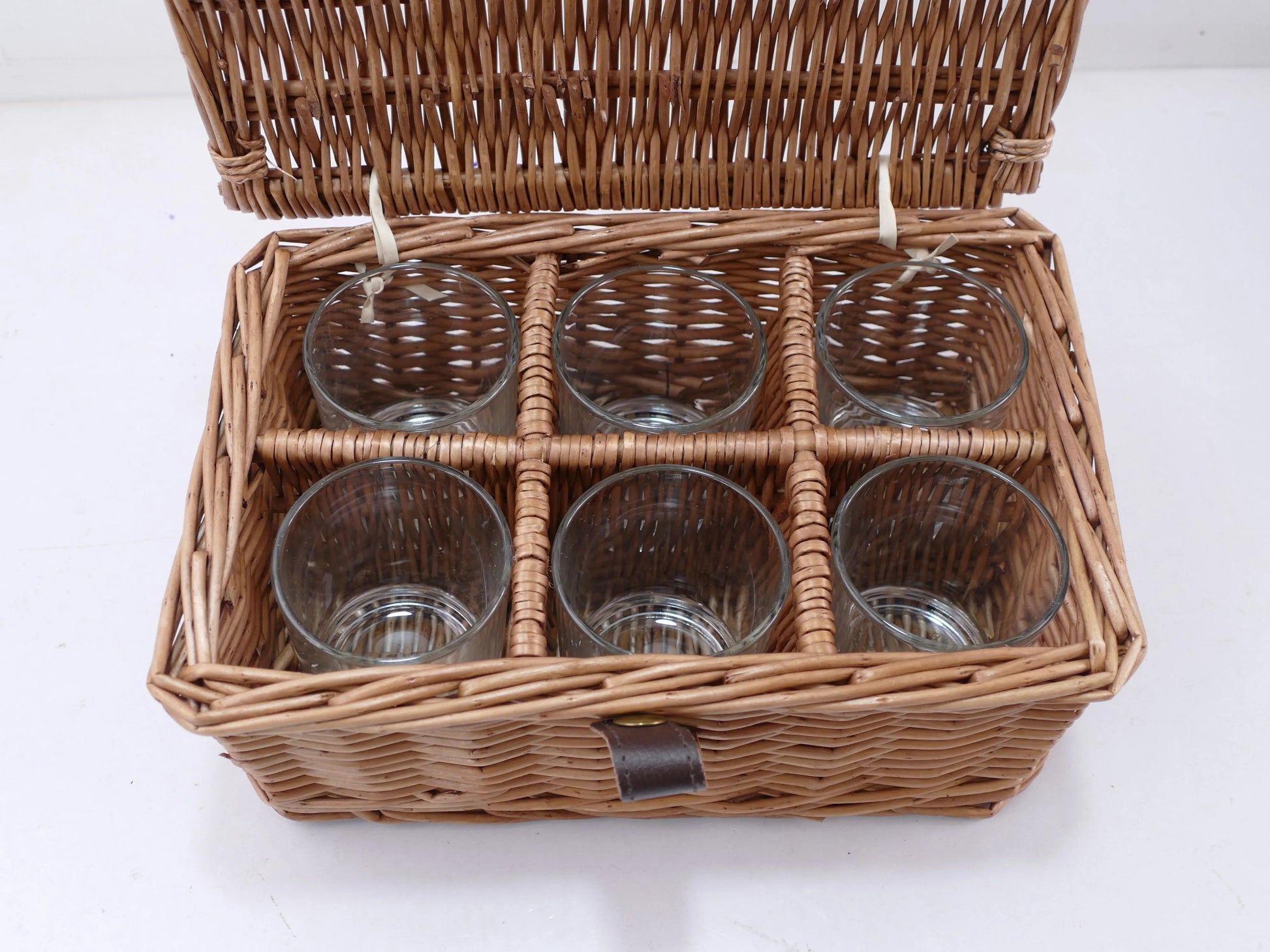 - 6 whiskey glasses in removable basket