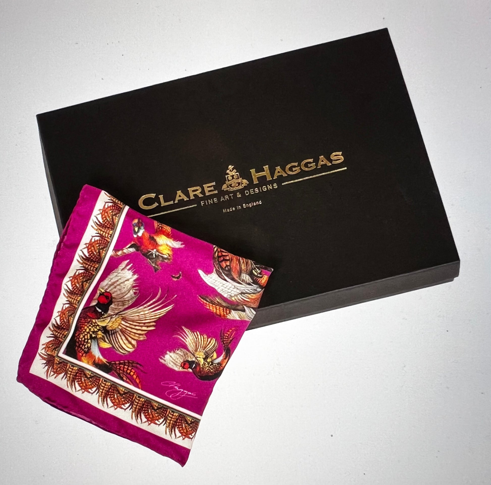 Channelling the spirit of the Glorious Twelfth, each of these pocket squares radiates the energy of the shooting season's start. Clare Haggas' original artwork vividly portrays the regal red grouse, capturing the rugged beauty of the moors.