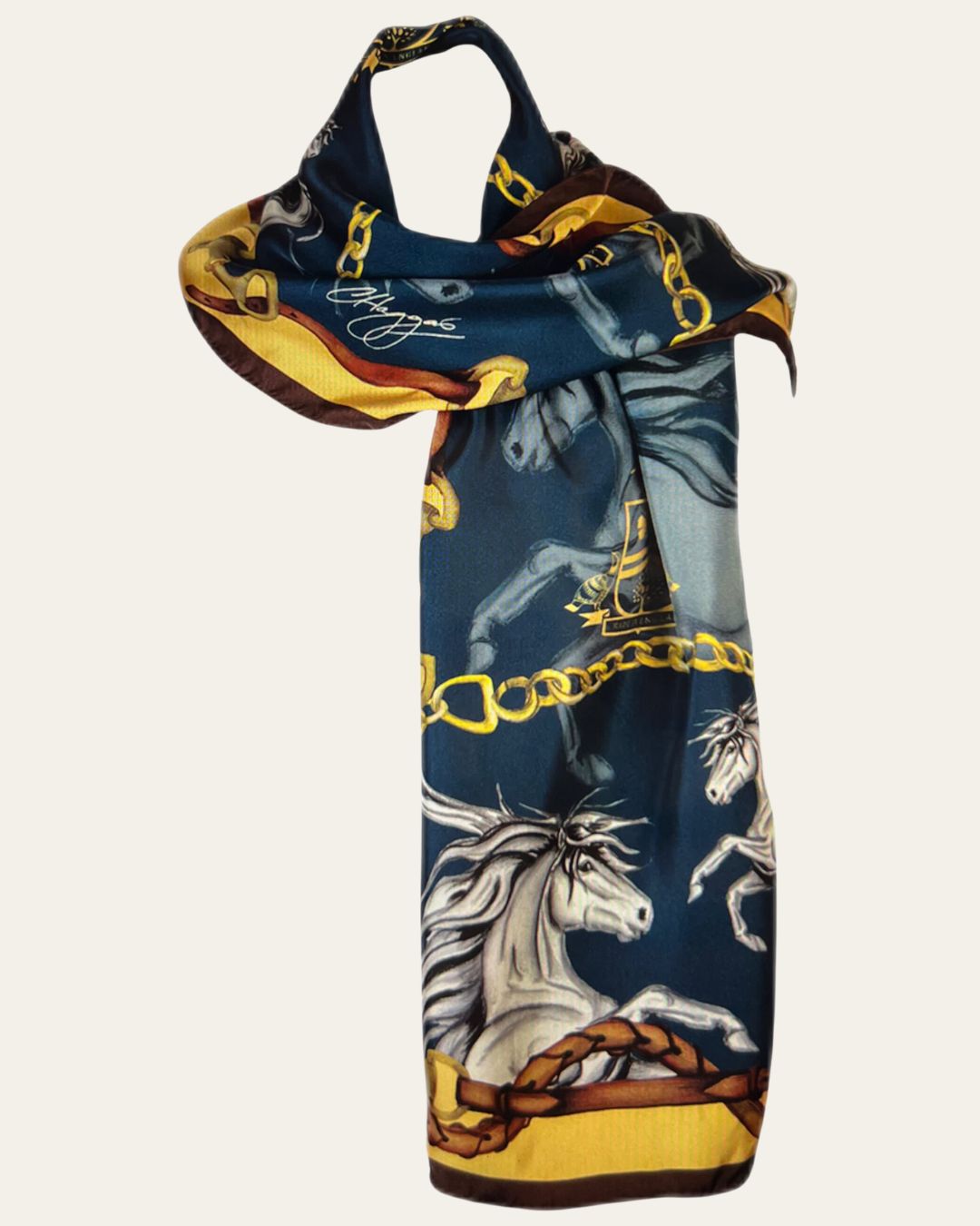 Hold Your Horses Toffee & Gold Classic Silk Scarf