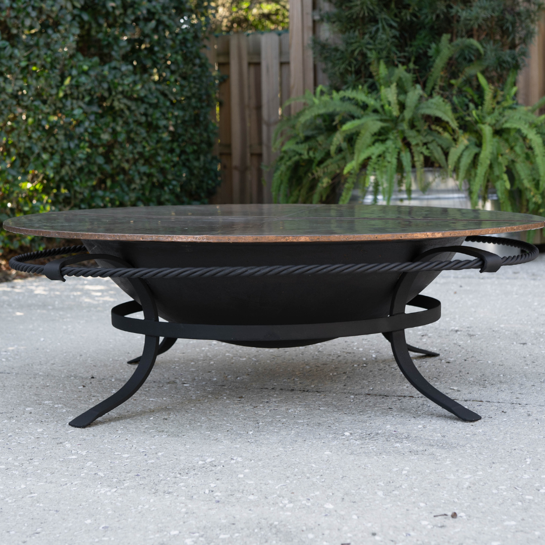 The Sea Island Forge Fire Kettle is a statement piece on its own, but adding our Metal or Copper Table Top makes it a Kettle for all seasons. Designed to protect your Kettle from the elements and keep it ready to burn, the Table Top also transforms it into a coffee table or serving piece when the fire’s not lit.