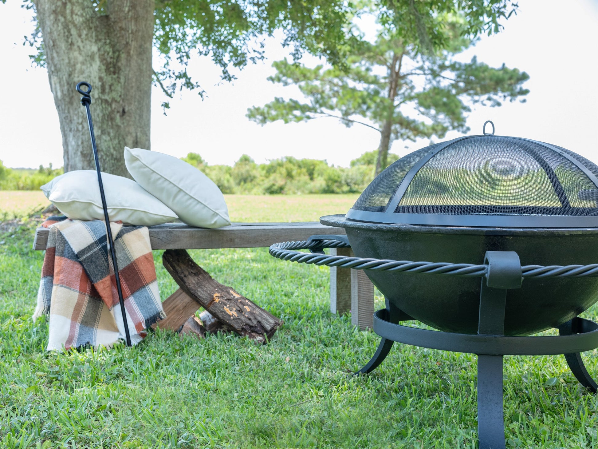 - Includes the 30-Gallon Fire Kettle & Boot Rail Stand, 30-Gallon Spark Screen, and Twisted Poker.